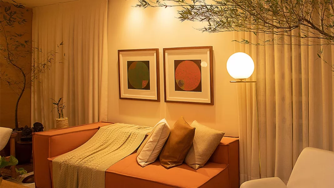 Mais especificamente, o tipo de luz usada no espaço. Luzes muito brancas ou fortes deixam o ambiente funcional, mas tiram a sensação de aconchego, principalmente em salas, quartos e cantos de descanso.