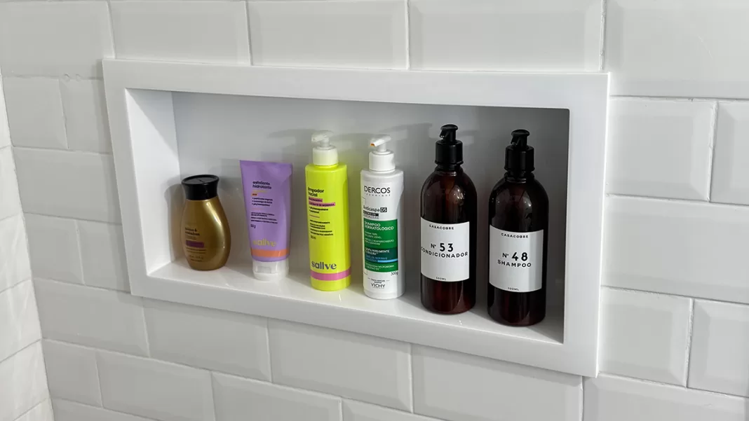 Após a secagem, organize seus itens no nicho. O resultado é um banheiro mais funcional, moderno e com ótimo custo-benefício.