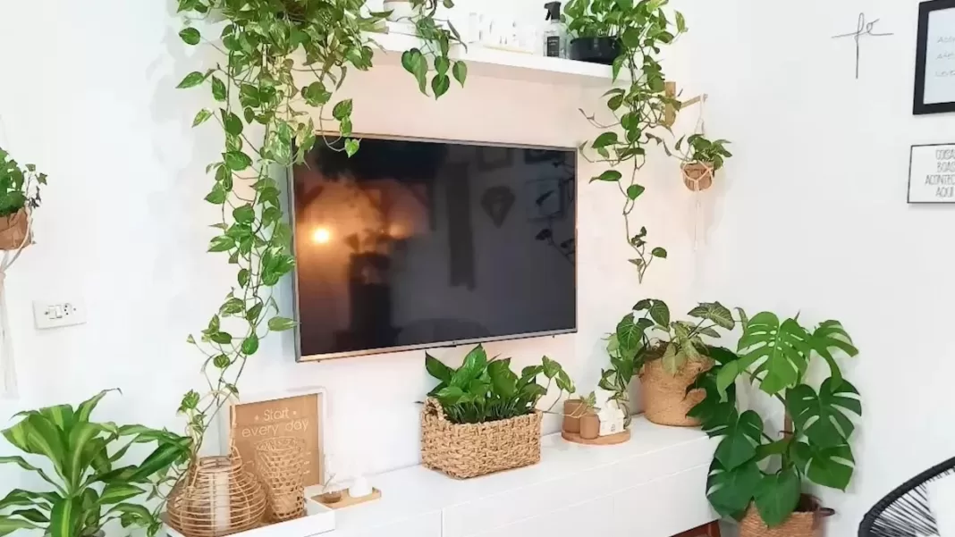 A jiboia é uma das plantas mais versáteis para ambientes internos. Seu crescimento em formato de cascata funciona bem em vasos suspensos, prateleiras ou até como planta de apoio no escritório.