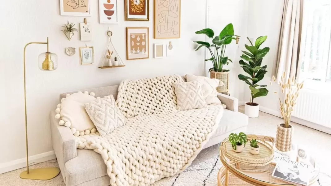 2. Sala com base neutra e acessórios contrastando