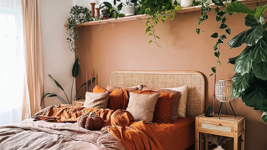 Se quiser ousar, transforme a parede atrás da cama com vasos suspensos ou até um pequeno jardim vertical. O resultado é único e muito aconchegante.